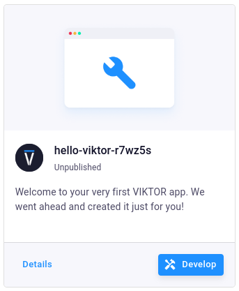 - By clicking the 'Develop' button on the app card. The 3 latest apps you created are shown on the 'Develop' page. Alternatively, you can find all your apps by visiting the App store and selecting 'My apps'.