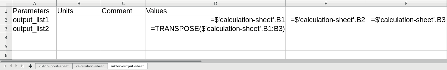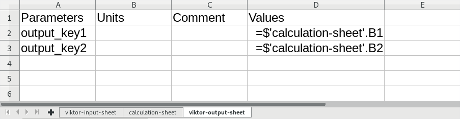 - In "viktor-output-sheet": add output identifiers in the "Parameters" column