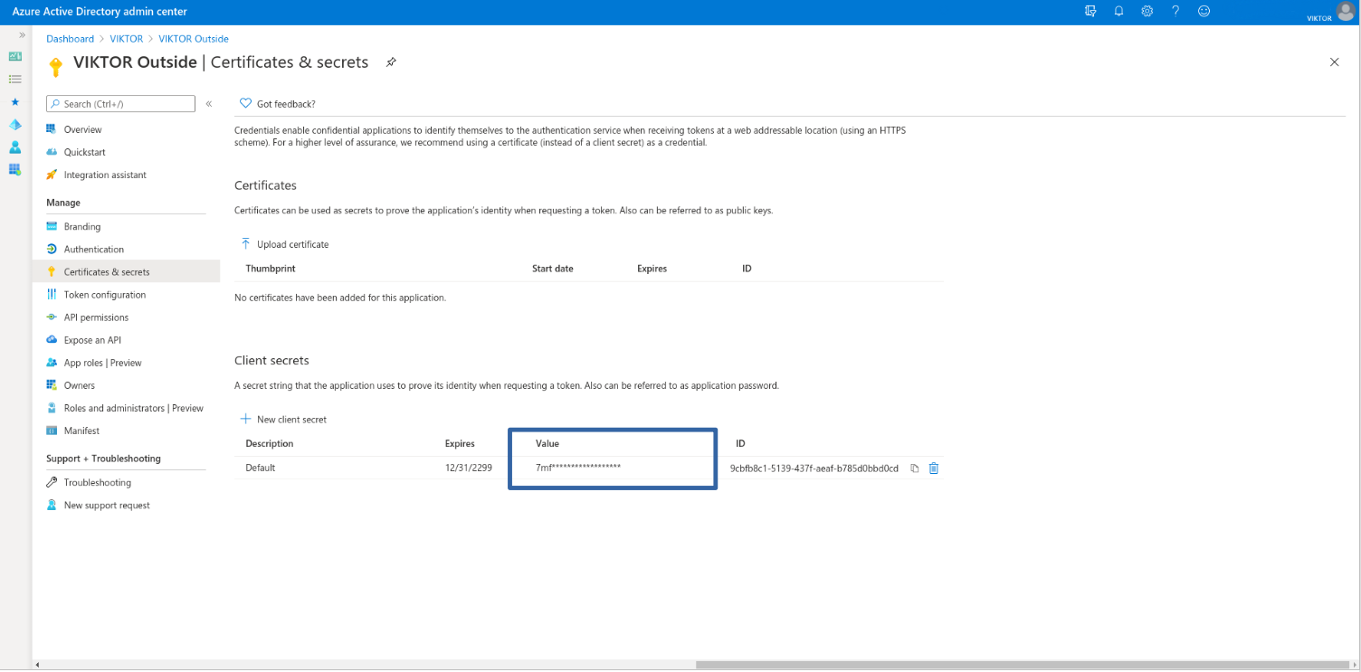 Now that your application is ready on Microsoft Entra ID, we will need the information below to setup your VIKTOR application:
