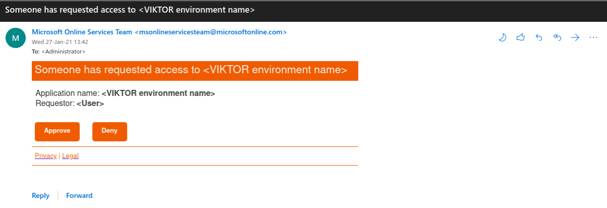 The user assigned to approve the self-service request will get an email for the application access requested by the user, like the one shown below. Approving the request will allow the user to login to the application.