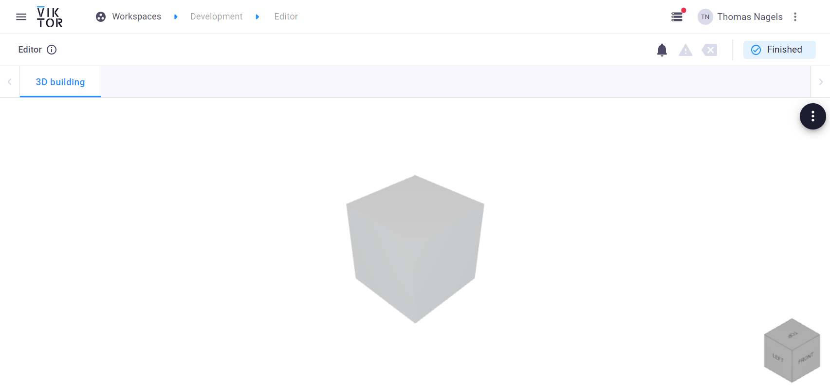 (e.g. https://cloud.viktor.ai) to see your cube. If all went well you should now see a simple cube in the middle of your