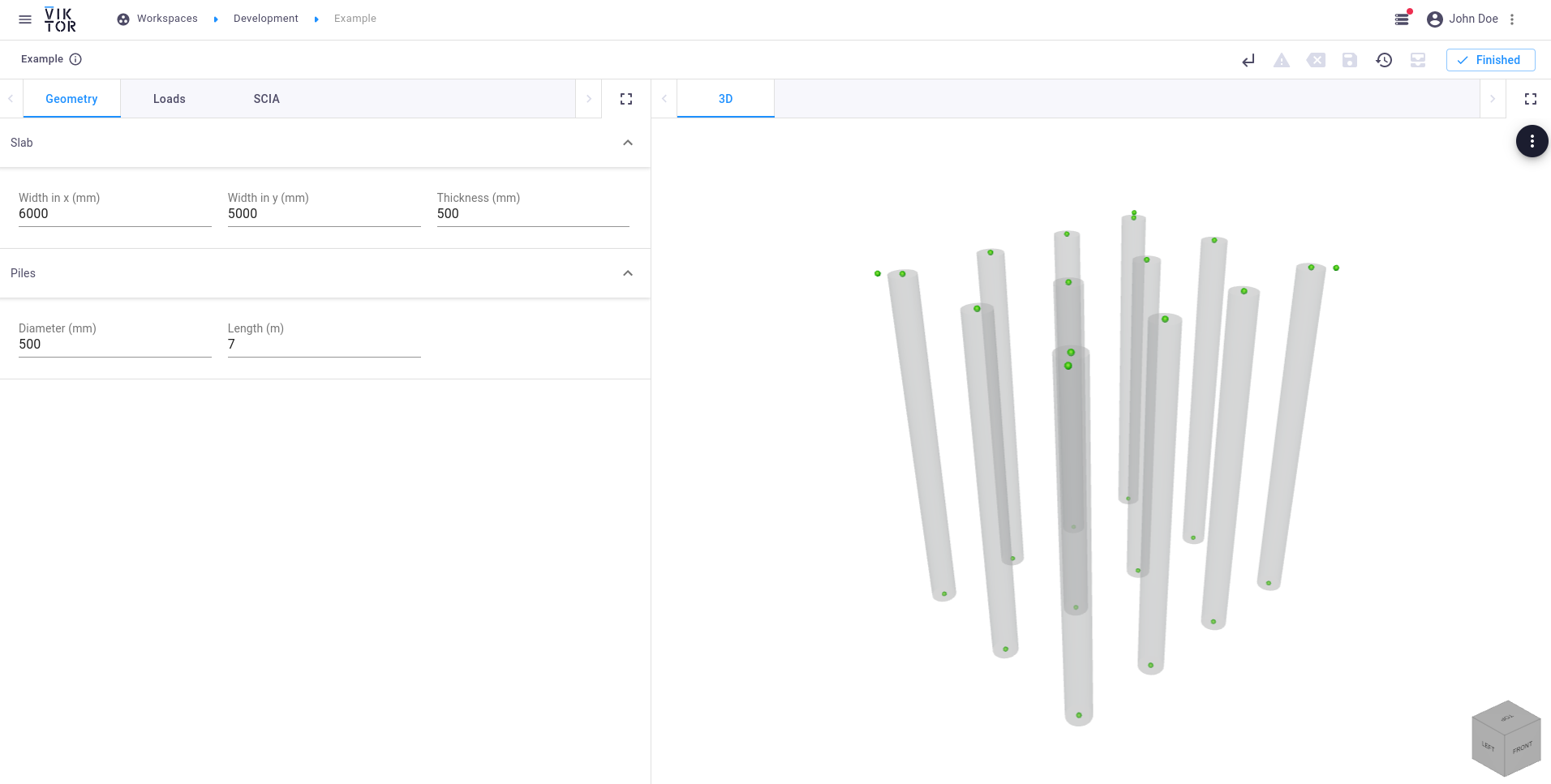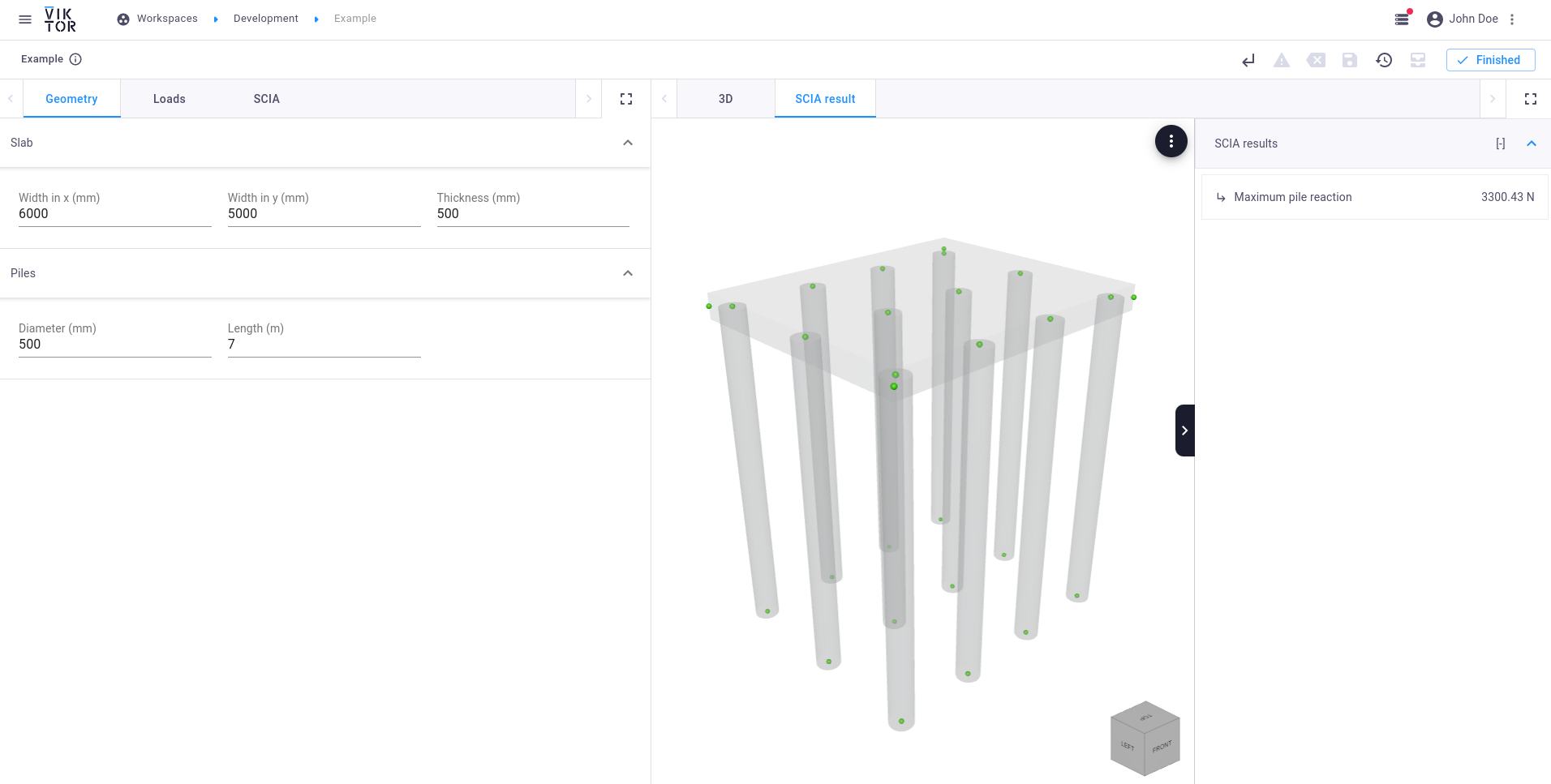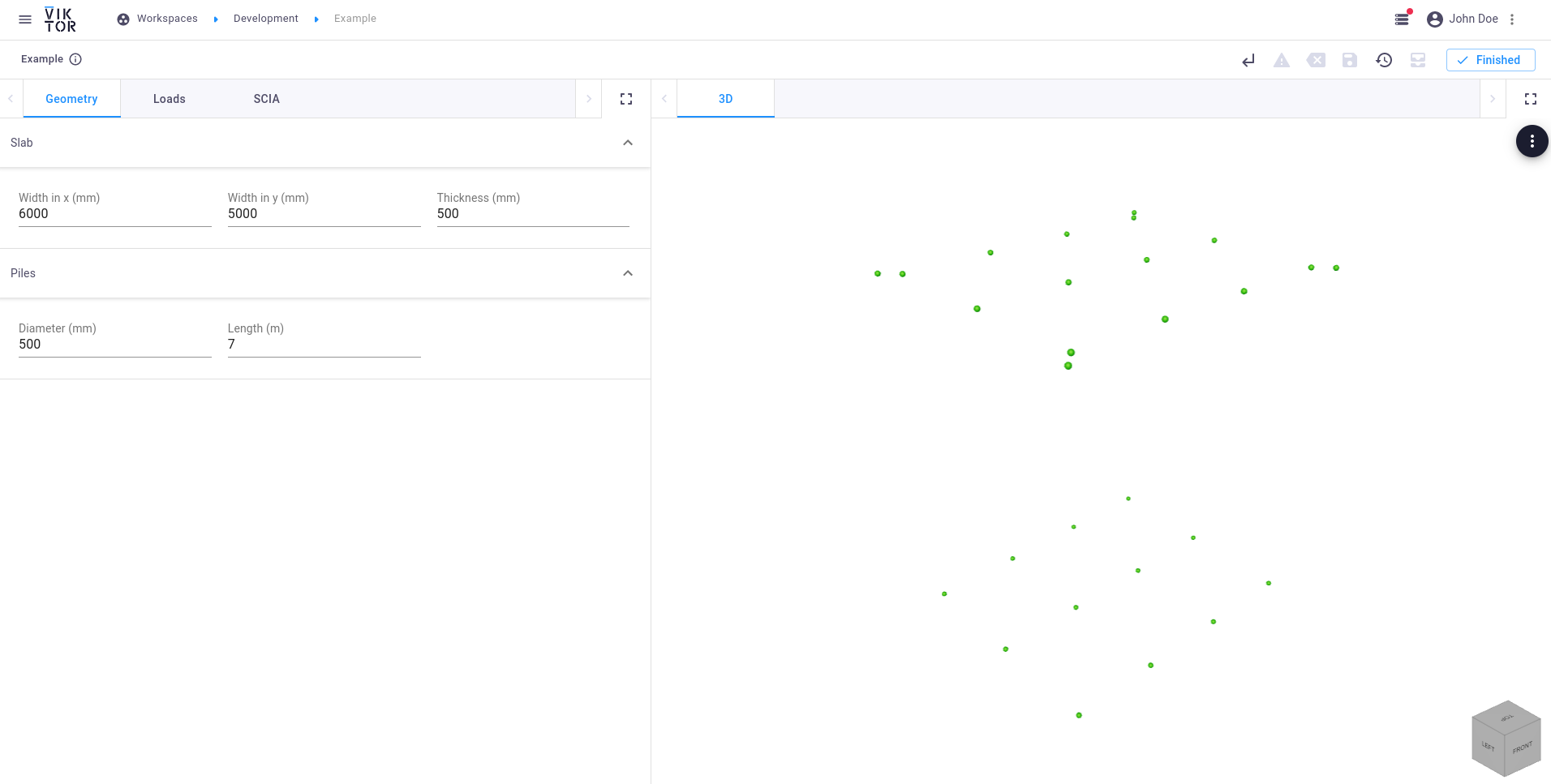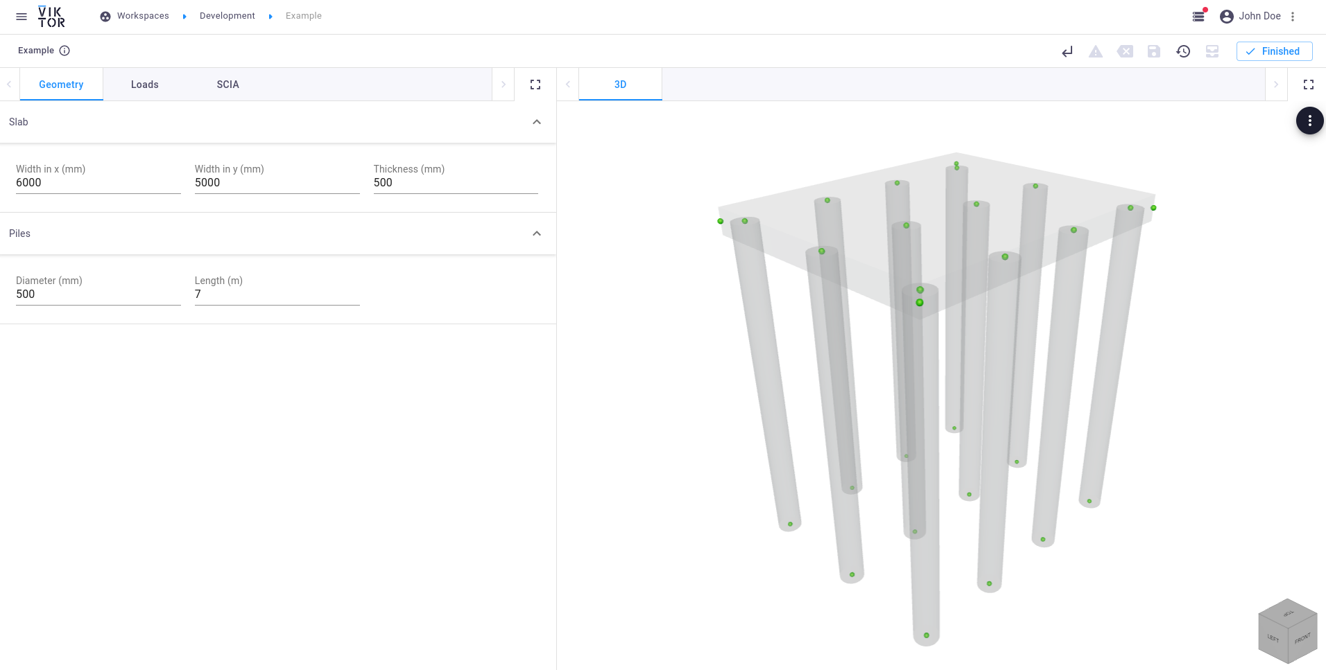 This tutorial explains how a SCIA model can be created within VIKTOR, which can be used for analysis using an external coupling. The SCIA model that we will be constructing consists of a foundation slab with piles.