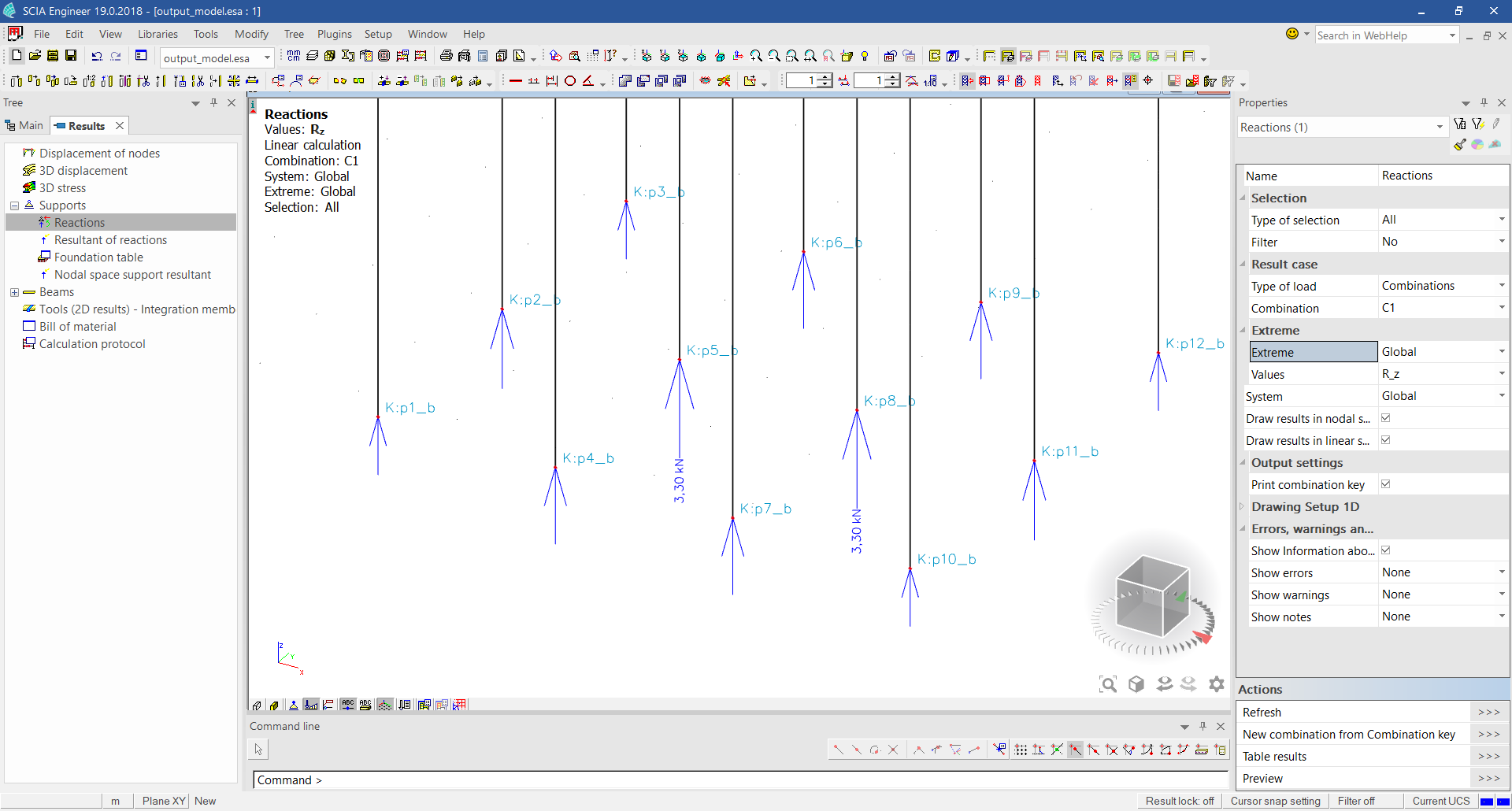 The pile reactions as seen from within the SCIA interface show a maximum of 3.3 kN (depending on your load input):