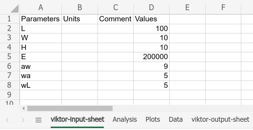 Open beam_calculation.xls and add two sheets: viktor-input-sheet and viktor-output-sheet. These